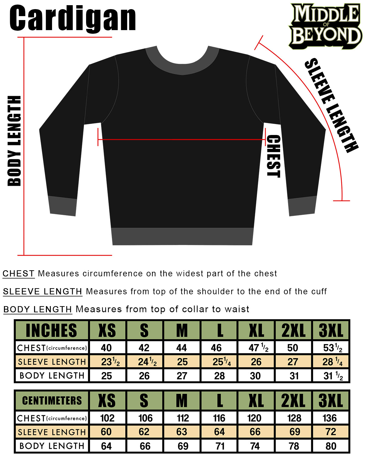 Please refer to our size chart. Measurements are taken with the item lying flat, not the full length around. Take a sweater or sweatshirt that you know fits and measure armpit to armpit across the chest to help estimate which size to order. If you have a specific sizing question or would like more information, please contact us.